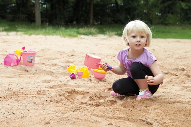 Růžová barva potěší malé stavitelky i stavitele a kompaktní rozměry umožní snadné nošení v batůžku nebo košíku s hračkami. Údržba je jednoduchá – stačí opláchnout vodou.