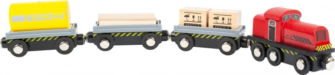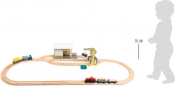 Součástí je 25 dílů kolejí, lokomotiva s vagóny a náklad. Sadu snadno propojíte s většinou dřevěných vláčkodráh pro ještě větší svět hry.