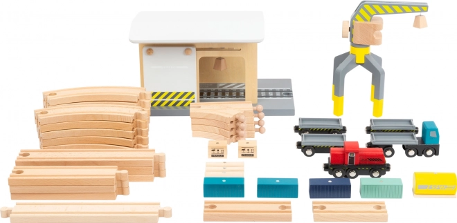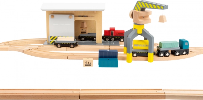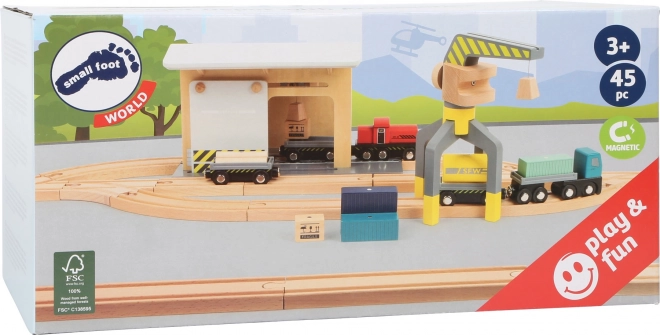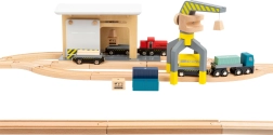Objevte kompletní dřevěnou sadu pro malou železnici, která je plně kompatibilní s běžnými vláčkodráhami. Děti si užijí realistické nakládání pomocí jeřábu, převoz nákladu a hru v depu. Sada obsahuje až 44 dílů, včetně 25 kolejí, otočného jeřábu 360°, magnetických vagónů a nákladů a posuvné stěny s kladkou. Vyrobeno ze 100% FSC dřeva pro bezpečnou a udržitelnou hru.