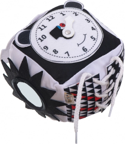 Tato měkká senzorická kostka učiní každý den vašeho malého objevitele úžasným. Kontrastní vzory a černobílé barvy stimulují zrak, zatímco různé textury pomáhají v rozvoji hmatu. Kostka je vybavena gracotkou a praskavými prvky, které zaujmou sluch i těch nejmenších.