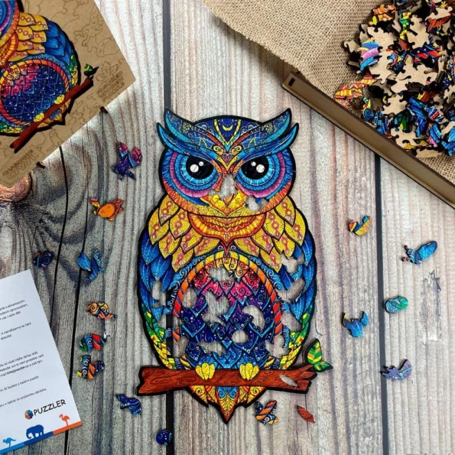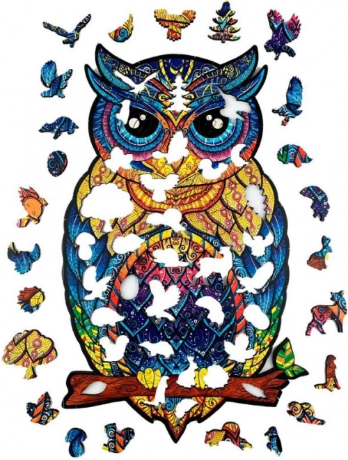 Jedinečné dřevěné puzzle Okouzlující sova nabízí zábavu s 160 dílky se speciálními tvary.