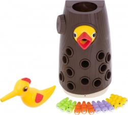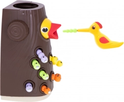 Vyzkoušejte přesnost pomocí magnetického zobáčku, který pomáhá chytit pestré červíky ze stromu.