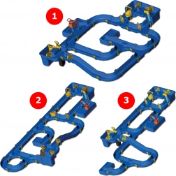 • 2 pumpy a komora, propojená s kanálem o velkém úhlu naklonění, Celková délka je 175 cm.
