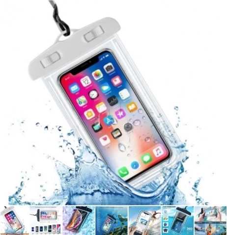 Součástí obalu je popruh pro zavěšení na krk. Přední strana je celá průhledná a nebrání v ovládání dotykového displeje. Na zadní straně je menší „okénko“ pro pohodlné focení i pod vodou nebo v silném dešti.