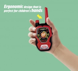 Tyto vysílačky mají atraktivní červeno-černý design a jsou ergonomicky navrženy pro malé ruce, což usnadňuje jejich použití.