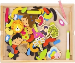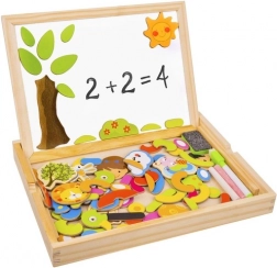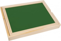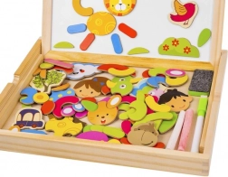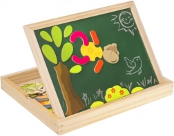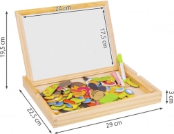 Přineste svým dětem hodiny zábavy a kreativního učení s touto dřevěnou magnetickou tabulí! Tabule nabízí dvě strany: černou pro kreslení křídou a bílou pro psaní fixem nebo aranžování magnetických obrázků. Díky brožurce s příklady mohou děti vytvářet různé vzory a motivy.