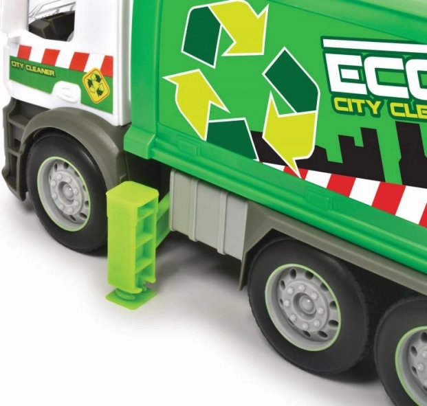Díky licencovanému designu Mercedes‑Benz a odolnému plastovému provedení je hračka ideální pro každodenní hraní doma i venku. Podporuje rozvoj jemné motoriky, představivosti a učení se o třídění odpadu a péči o životní prostředí.