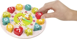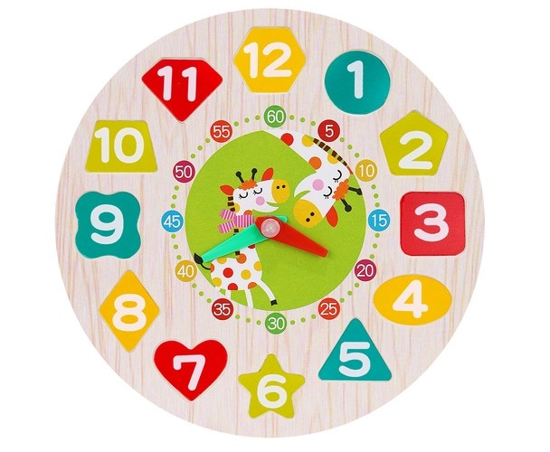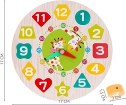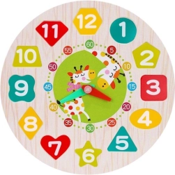 Barevné dřevěné hodiny s vyjímatelnými čísly v různých tvarech jsou ideální pro první učení. Děti si procvičí rozpoznávání tvarů a barev, počítání, čtení času i jemnou motoriku. Bezpečné zpracování, 12 dřevěných dílků, pohyblivé ručičky a šňůrka na navlékání zaručí spoustu zábavy i rozvoje.