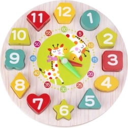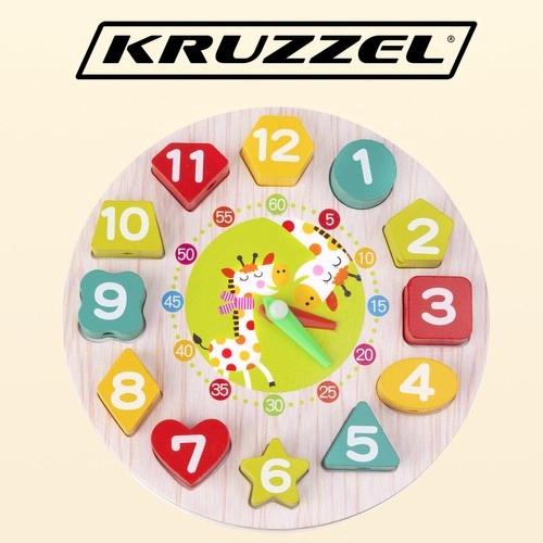 Tato dřevěná výuková hračka spojuje hru a učení v jednom. Kulatá základna s čísly 1–12 v různých tvarech učí děti přiřazovat tvary, poznávat barvy a číslice, zatímco pohyblivé hodinové a minutové ručičky pomáhají pochopit plné hodiny i minuty. Odolné dřevěné díly jsou příjemné do ruky a bezpečně opracované.