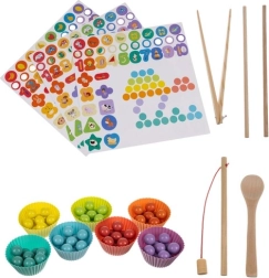 Barevné kuličky, kroužky a magnetické rybičky přinášejí zábavné aktivity na dlouhou dobu. Děti skládají vzory, chytají rybky a objevují nové kombinace.