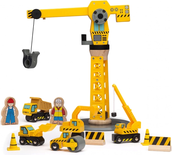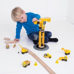 Tato kvalitní dřevěná stavebnice s otočným jeřábem a magnetickým hákem přináší dětem nekonečné možnosti hry. Díky robustnímu zpracování a bezpečným materiálům je ideální pro každodenní hraní a rozvoj dovedností. Jasné žluté provedení stavebních vozidel děti okamžitě zaujme.
