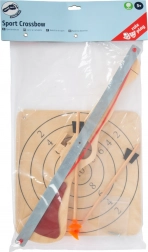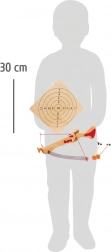 Zábavná a bezpečná dřevěná kuše pro děti od 5 let přináší trénink přesnosti a koordinace. Střílí dřevěné šípy s přísavkami, které díky kvalitním gumovým koncovkám dobře drží na hladkých površích. Součástí je terč a 2 šípy, takže zábava může začít hned.