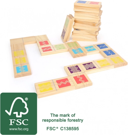 Užijte si velkou porci zábavy s XXL dominem z kvalitního FSC dřeva. Sada o 28 dílcích nabízí hru na shodu barev i vzorů, rozvíjí jemnou motoriku, logiku a vnímání barev. Díly jsou velké, pevné a bezpečné pro děti od 3 let. Ideální pro hraní doma i venku. FSC certifikace, 28 extra velkých dílků, barevné a šrafované vzory, vhodné pro nejmenší.