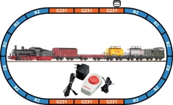 • Kompletní obsah – lokomotiva, 5 nákladních vozů, koleje, napájení a ovladač.