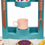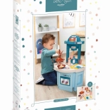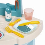 Tato azurová dětská kuchyňka přináší realistickou hru na vaření díky kombinaci trouby, sporáku se dvěma hořáky a dřezu s kohoutkem. Police a háčky pomáhají držet všechno příslušenství na svém místě a podporují pořádek i samostatnost při hraní.