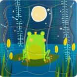 Každá vrstva znázorňuje jinou fázi – od vajíčka, přes pulce, až po žabího prince. Děti si hravou formou upevní znalosti o přírodě a současně trénují skládání podle tvarů a obrázků.