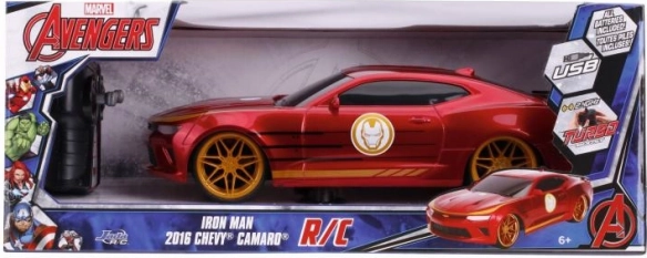 Stylové dálkově ovládané auto inspirované hrdinou IRON MAN přináší zábavu hned po vybalení – v balení jsou všechny baterie a nabíjení probíhá přes USB. Model Chevrolet Camaro 2016 v měřítku 1:16 jezdí rychlostí až 9 km/h, pracuje na 2,4 GHz s 2kanálovým ovládáním a nechybí Turbo pro rychlé zrychlení.