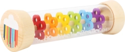 Objevte jemný zvuk deště s touto kvalitní dešťovou holí od Small Foot. Průhledné tělo umožňuje dětem sledovat barevné kuličky a květinové překážky, které při pohybu vytvářejí uklidňující zvuk. Skvělá jako smyslová hračka, chrastítko a rytmický nástroj pro rozvoj sluchu i zraku.