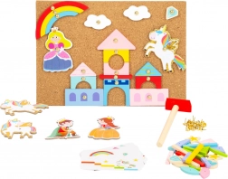 Ponořte se do magického světa kreativní zábavy s Zatloukací hrou Jednorožec. Tato hra umožňuje vašim dětem vytvářet různé scénky a příběhy za pomoci přiloženého kladívka a pestrých dřevěných tvarů. Sada obsahuje také předlohy, které mohou děti inspirovat k vytvoření pohádkových obrazů.