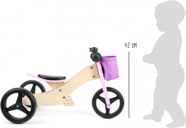Dřevěné odrážedlo 2v1 růžové small foot doprovodí malé jezdce od prvních krůčků až po sebejistou jízdu. Začněte jako tříkolka pro maximální stabilitu a trénink rovnováhy, poté jednoduchou přestavbou pokračujte jako balanční odrážedlo. Lehká a robustní konstrukce zajišťuje snadnou manipulaci i dlouhou životnost.