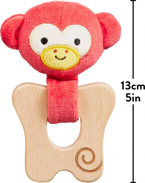 Kousátko s hlavou veselé opičky přináší miminku útěchu i zábavu. Textilní část z organické bavlny je příjemná na dotek, dřevěný kroužek z FSC certifikovaného bukového dřeva je hladký a odolný. Ergonomický tvar podporuje rozvoj jemné motoriky a bezpečný úchop.