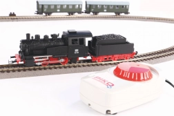 - Kompletní balení – lokomotiva BR 98 s tendrem, 2 × osobní vůz, koleje, napájení a ovladač.