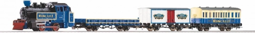 - Realistické provedení – parní lokomotiva 0-4-0 a tři vozy v barvách RONCALLI.