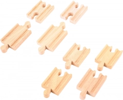 Tyto univerzální spojky kolejí o délce 7 cm jsou ideální pro doplnění nebo opravu vaší stávající sady. Jsou vyrobeny z kvalitního, zodpovědně získaného dřeva a skvěle zapadnou do většiny dřevěných vláčkodráh. Díky přesnému tvarování se díly snadno propojují a zaručují stabilní a plynulou jízdu vláčků.