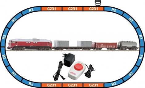 - Lokomotiva BR 130 ČSD (1×), nákladní vozy (3×), obloukové koleje R2 s podložím 55412 (12×), rovné G231 s podložím 55401 (5×), rovná G231 s napájecím připojením 55406 (1×), podložní díl pro svorku 55447 (1×), napájecí svorka 55270 (1×), analogový ovladač se zdrojem 55003 (1×)