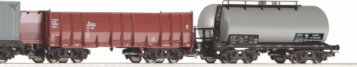 Souprava zahrnuje kontejnerové plošinové vozy, otevřený vůz a cisternu pro autentický smíšený náklad a variabilní sestavy.