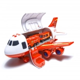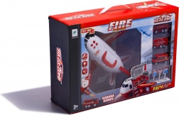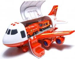 Velké hasičské letadlo–transportér pro děti od 3 let převáží mini vozidla i značky a přináší spoustu akce. Nabízí otevírání z boku, zadní nájezdovou rampu, světla a zvuky na 4 tlačítka a praktické madlo pro snadné přenášení. V balení najdete 3 hasičská auta a 7 dopravních značek – vše se vejde dovnitř letadla.