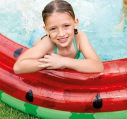 Nafukovací bazén s melounovým designem rozzáří každou zahradu a přinese dětem i rodičům hodiny vodních radovánek. Kvalitní vinyl o tloušťce 0,28 mm zaručuje dlouhou životnost, zatímco reálné 3D vyobrazení melounu dodává bazénu jedinečný vzhled. Díky rychlé instalaci a snadné údržbě je ideální volbou pro horké letní dny.