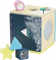 Děti mohou vkládat různé tvary do odpovídajících otvorů, což rozvíjí jejich jemnou motoriku a prostorovou orientaci.