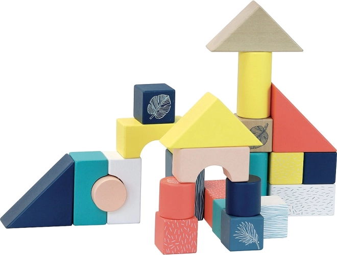 Obsahuje 24 kostek různých tvarů a barev, které podporují kreativitu a prostorové myšlení.
