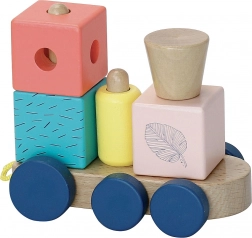 Barevné kostky a pojízdný vlak podněcují kreativitu a představivost dětí.