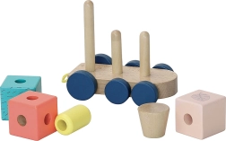 Hračka, která podporuje rozvoj jemné motoriky a koordinace díky skládání a manipulaci s kostkami.