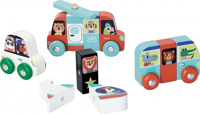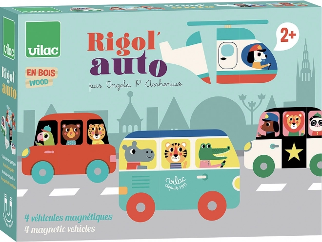 Objevte kreativní sadu Vilac pro nejmenší: dřevěné magnetické puzzle, ze kterých postavíte až čtyři různá vozidla – autobus, helikoptéru, osobní a policejní auto. Díly lze libovolně kombinovat, takže děti rozvíjejí fantazii i jemnou motoriku. Ilustrace od švédské umělkyně Ingela P. Arrhenius dodávají hračce jedinečný retro styl. Vhodné od 2 let, obsahuje 12 dílků z kvalitního dřeva s bezpečnými magnety.