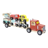 Tento robustní dřevěný kamion s odnímatelným přívěsem je ideální pro malé řidiče a milovníky vozítek. Děti mohou samy nakládat a vykládat 6 tematických dopravních prostředků a rozvíjet tak svou zručnost a logické myšlení. Barevné detaily a přátelský vzhled podporují imaginativní hru a učí děti poznávat různá vozidla.