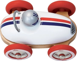 Dopřejte dětem klasickou hračku s nadčasovým šarmem. Dřevěný Roadster od značky VILAC kombinuje kvalitní lakované dřevo a kov s pogumovanými koly, díky nimž je jízda tichá a plynulá jak na podlaze, tak na koberci. Elegantní bílé tělo s modro-červenými pruhy a stylová figurka řidiče podtrhují autentický závodní vzhled.