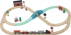Sada je kompatibilní s dalšími dřevěnými vláčkodráhami na trhu, takže trať můžete kdykoli rozšířit. Retro kufřík zajišťuje praktické uložení a přenášení, a originální design Ingely P. Arrhenius dodává celé sadě jedinečný styl.