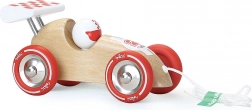 Toto elegantní dřevěné závodní auto s výraznými červenými detaily a křídlem si děti zamilují na první pohled. Díky šňůrce ho snadno vezmou na procházku po bytě i venku a při tahání přirozeně rozvíjejí stabilitu a koordinaci. Pogumovaná kovová kola zajišťují plynulou a tichou jízdu.