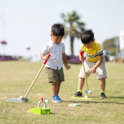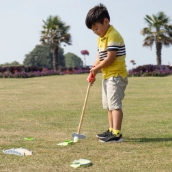 Různorodé mini-golfové prvky a překážky udrží děti v pohybu a podpoří zlepšování přesnosti i taktiky hry.