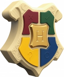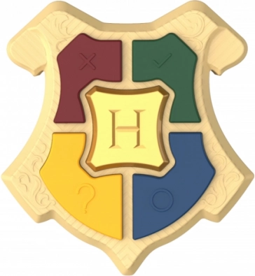Barevné sekce červená, zelená, žlutá a modrá odkazují na školní koleje a středové „H“ podtrhuje autentický vzhled pro fanoušky světa HARRY POTTER.