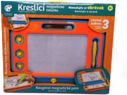 Magnetická kreslicí tabulka je ideální volbou pro malé umělce doma i na cestách. Díky kouzelnému magnetickému peru a třem razítkům si děti užijí hodiny tvoření bez potřeby papíru a pastelek. Jediným posunem mazací lišty obrázek zmizí a plocha je připravena na další dílo.