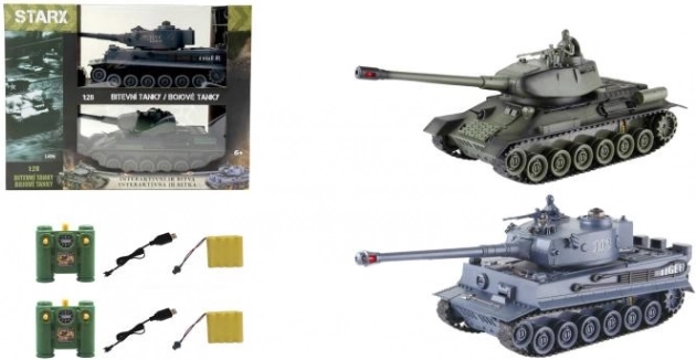 Užijte si akční souboje s dvojicí realistických RC tanků STARX na frekvenci 2,4 GHz s infra bitevní funkcí, zvukovými a světelnými efekty výstřelu a intuitivním ovládáním páčkami. Každý tank má 3 životy, dobíjecí bateriový pack je součástí balení – ideální pro dvojhru hned po vybalení.