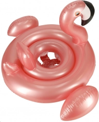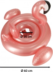 Rozkošné růžové nafukovací kolo ve tvaru flaminga s integrovaným sedátkem pro nejmenší. Ideální do bazénu i k vodě, vyrobené z odolného PVC a navržené pro stabilitu, pohodlí a bezpečnější seznamování s vodou (do 20 kg, cca 1–3 roky).