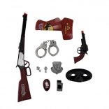 Zábavná sada pro malé kovboje obsahuje pistoli, pouta a kolt pro nápadité hry na Divoký západ. Ideální pro dětské převleky a domácí dobrodružství. Podporuje kreativitu, rolovou hru a bezpečnou zábavu.