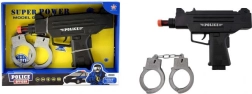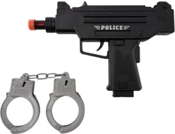 Zábavná sada policejního vybavení pro děti, která obsahuje policejní pistoli a pouta. Ideální pro hraní na policistu, rozvoj fantazie a role-play doma i venku.