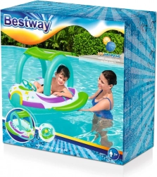 Zábavný nafukovací člun BESTWAY Space Splash pro děti od 3 let nabízí bezpečnou hru ve vodě, odnímatelnou stříšku s UV ochranou, nafukované dno s okénkem peek‑a‑boo a volant s klaksonem. Stylový „kosmický“ design a pohodlné madla zajistí hodiny radosti v bazénu, u jezera i u moře.