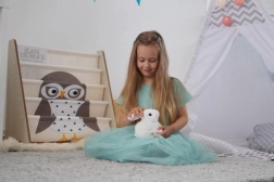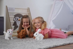 Zajíček chodí, vydává zvuky a hýbe čumáčkem, takže působí jako skutečné zvířátko a podporuje interaktivní hru.